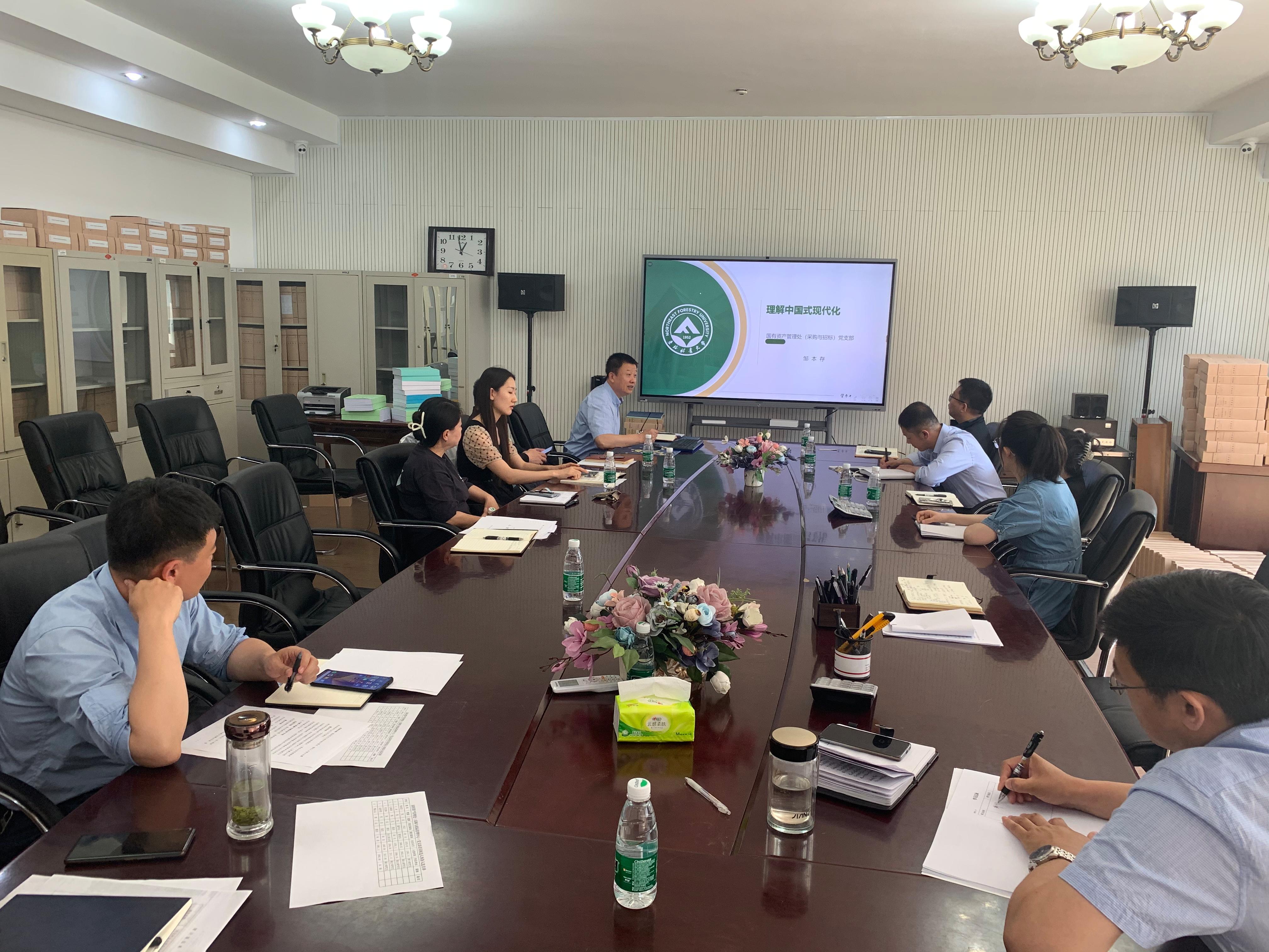 为深入推进习近平新时代中国特色社会主义思想走深走实,引导党员学习习近平总书记关于教育强国的重要讲话精神。6月7日下午2点,国有资产管理处党支部书记邹本存在综合楼410会议室为我处全体党员讲授《理解中国式现代化》的专题党课。