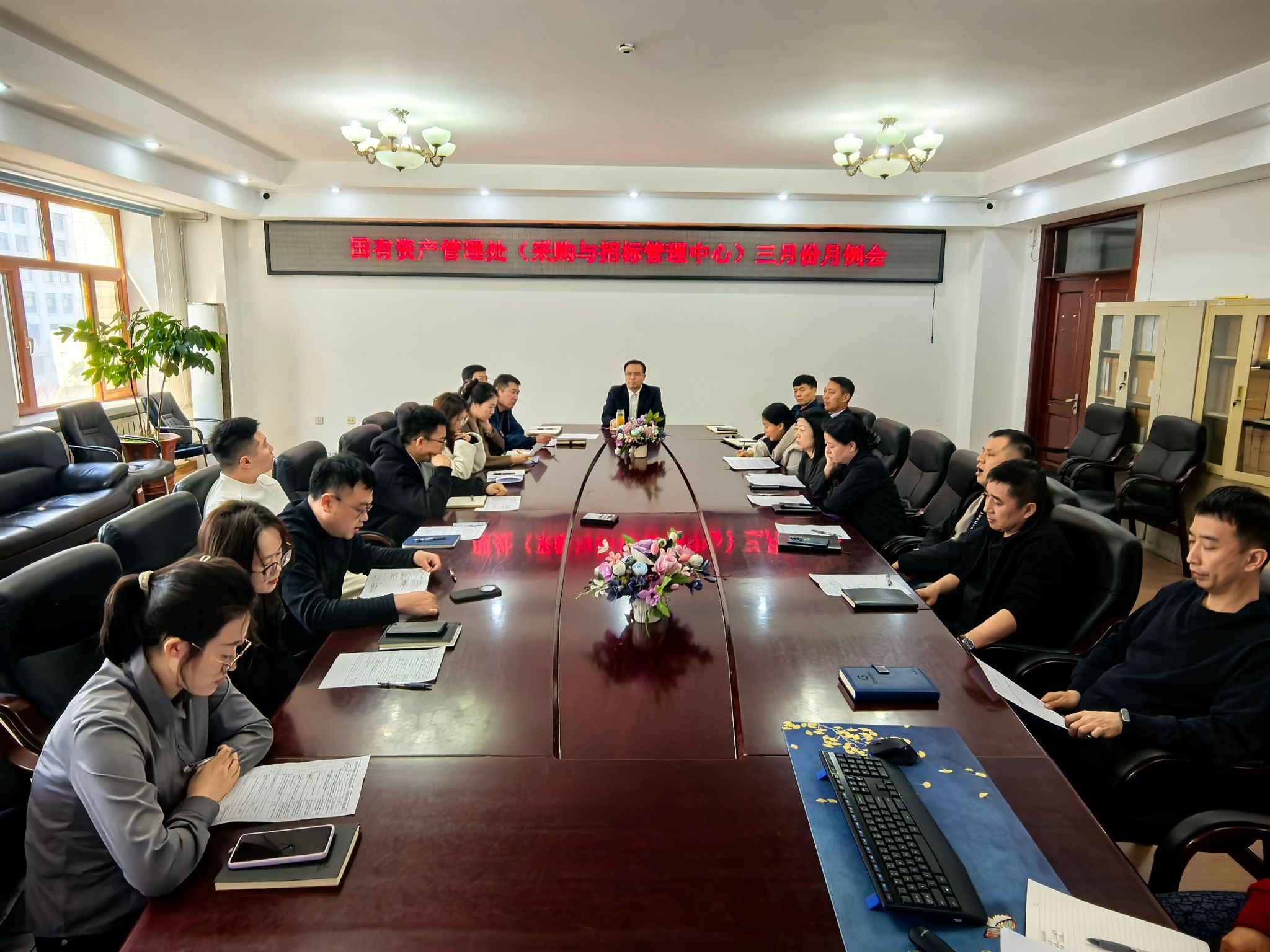 为全面梳理阶段性工作、明确下一阶段工作方向,持续深化工作作风建设,推动树立和践行正确政绩观学习教育走深走实,3月31日下午,国有资产管理处(采购与招标管理中心)召开首次月例会。部门全体人员参加会议,处长李国梁主持会议。